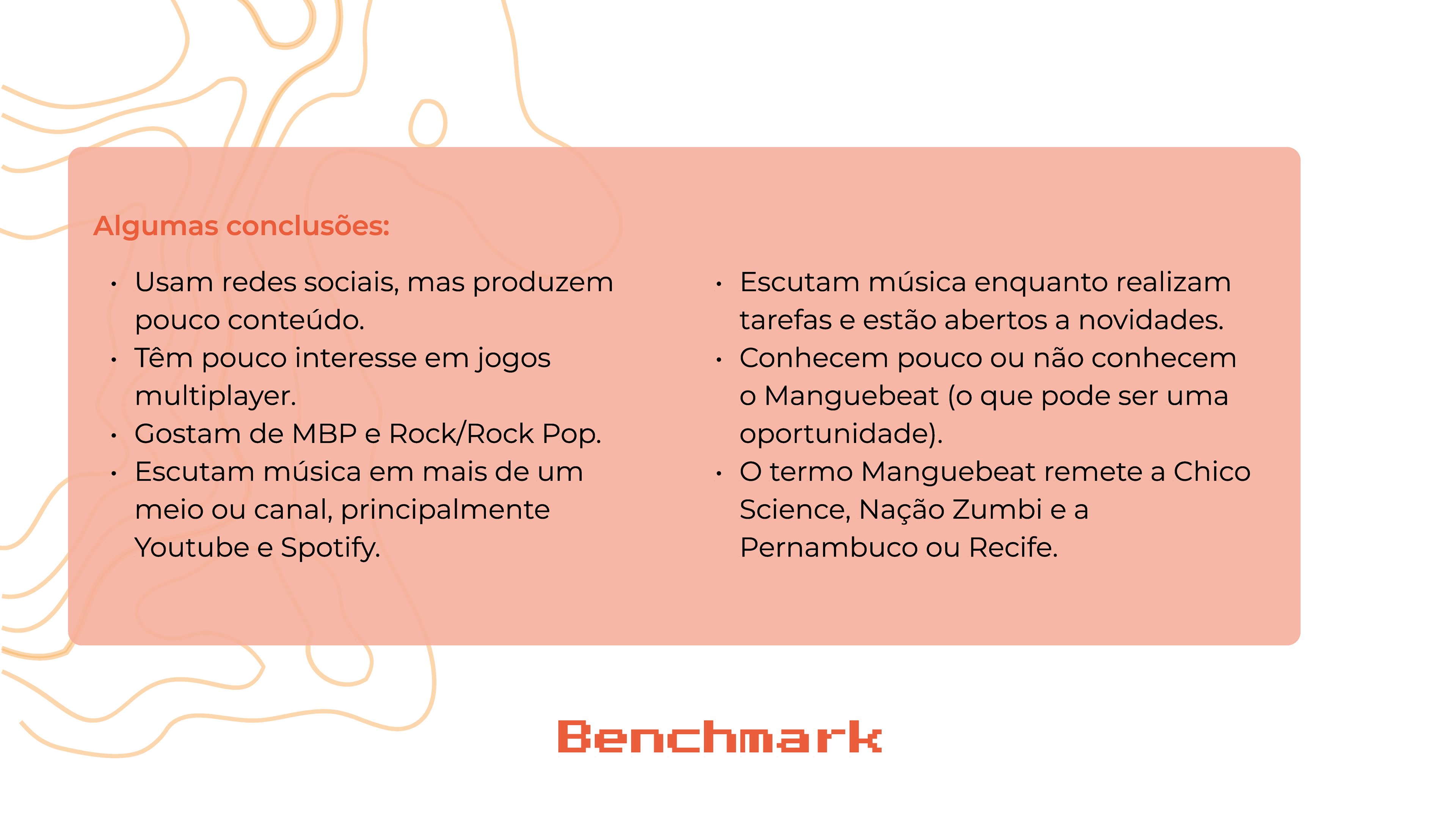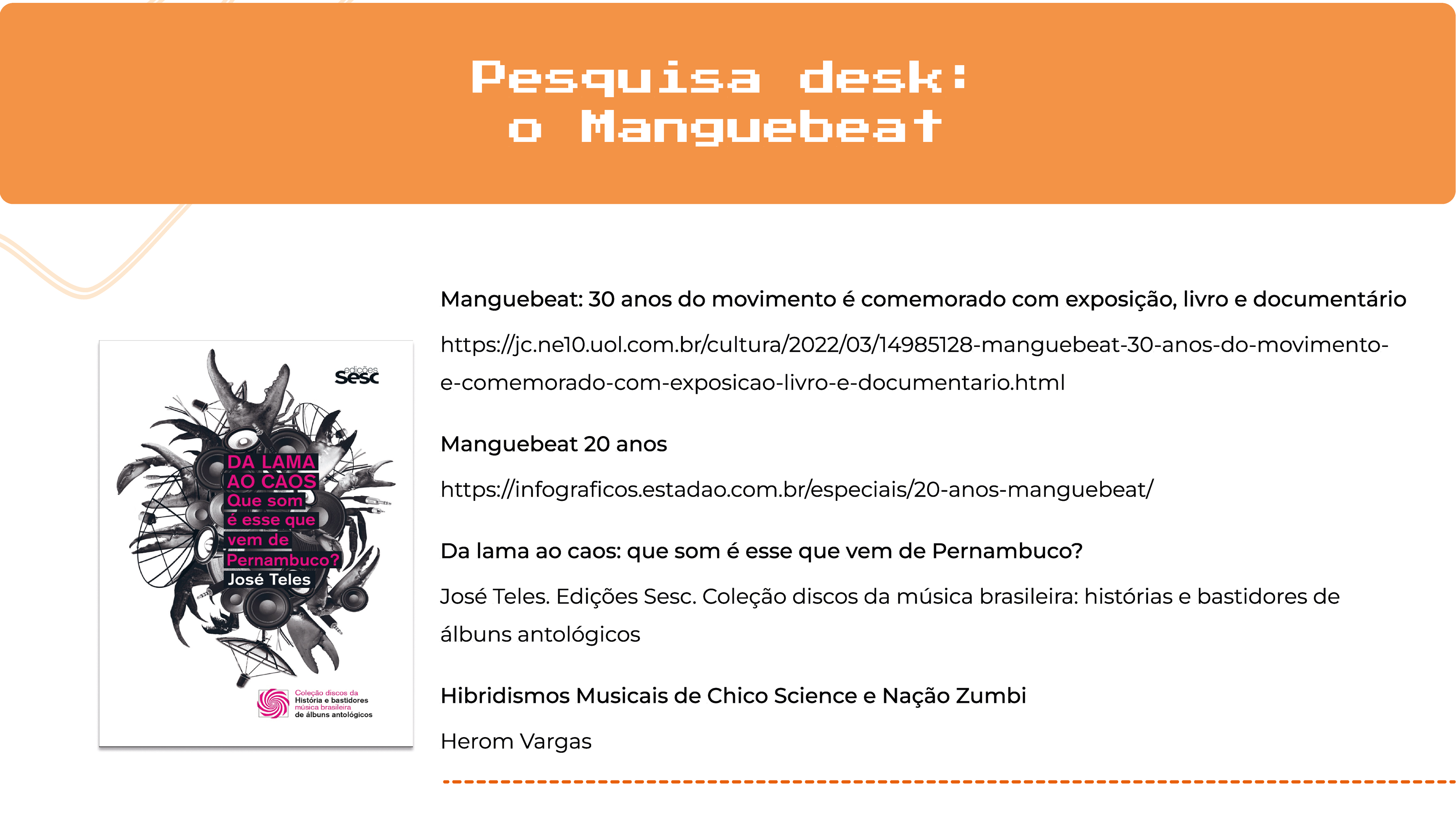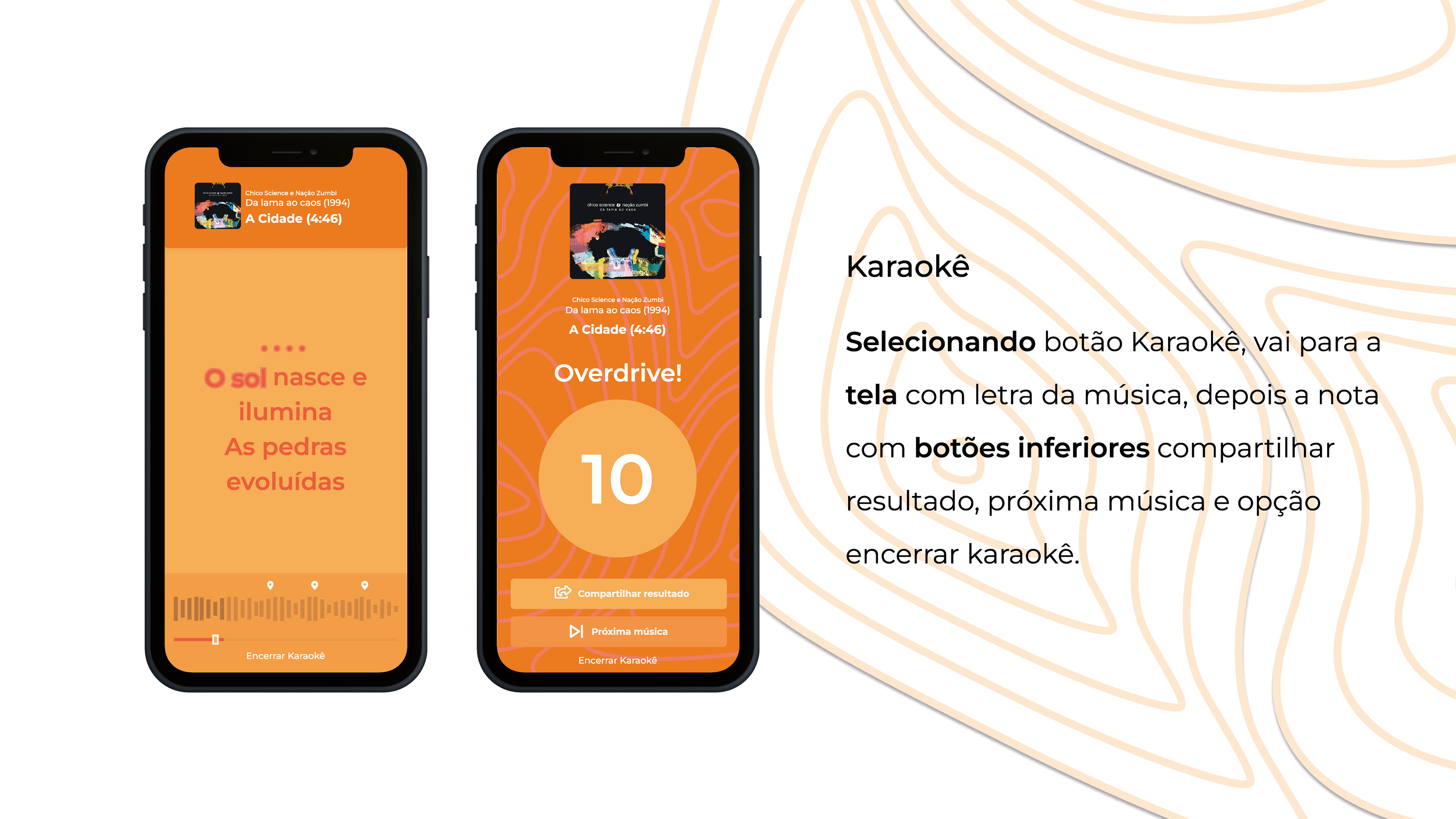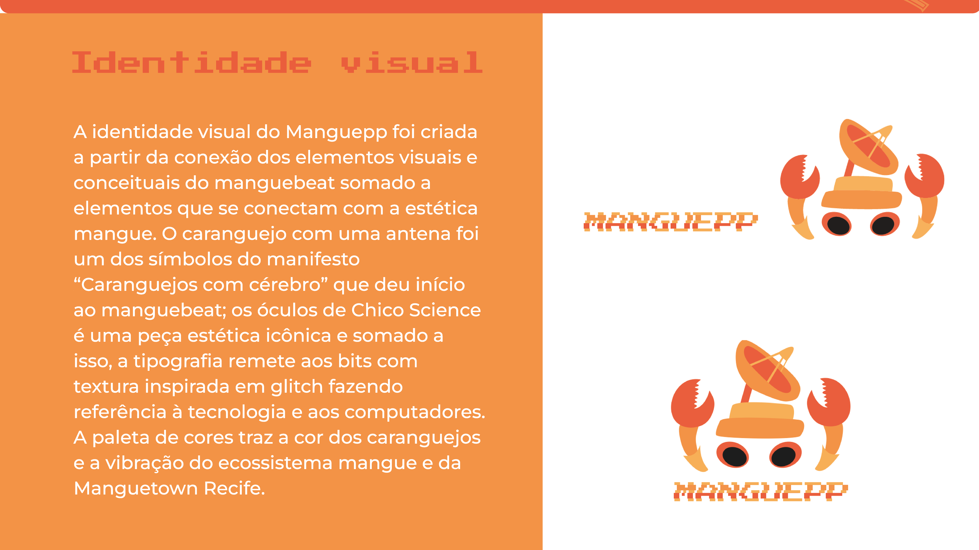 Trabalho iniciado durante a disciplina de Design de Interfaces e ajustado como projeto de conclusão de curso. Ele apresenta um aplicativo de música de um recorte muito importante da cultura pernambucana que é o Manguebeat. Através desse aplicativo, é possível conhecer a história dos álbuns, a história dos artistas, os ritmos relacionados em cada uma das músicas, assim como um karaokê.